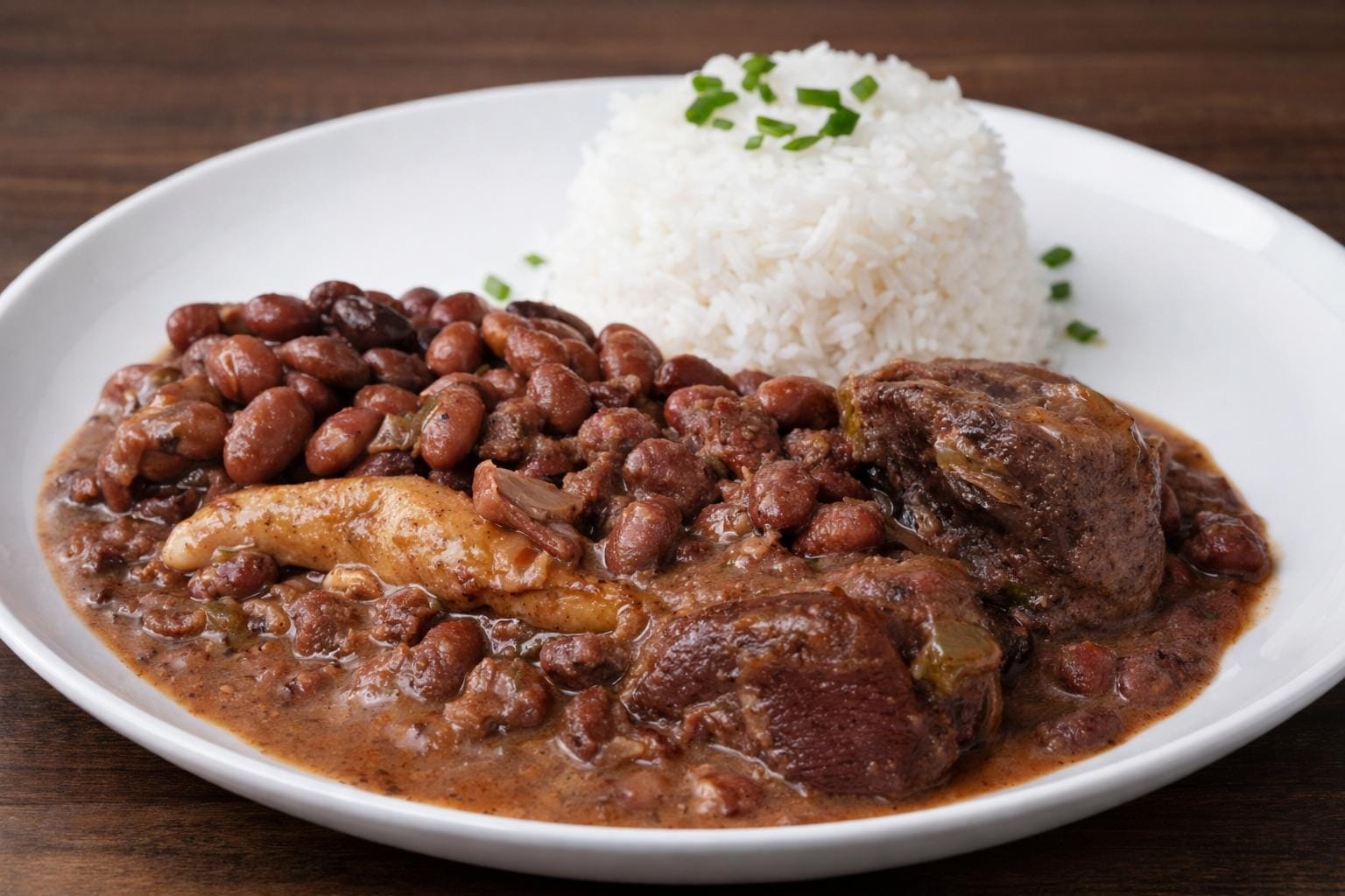 Large portion of stew peas cooked slow for rich flavour.